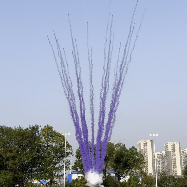 Фиолетовый дым со свистом и треском наверху;