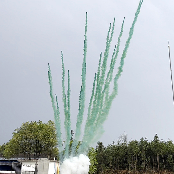 Зелёный дым со свистом и треском наверху;